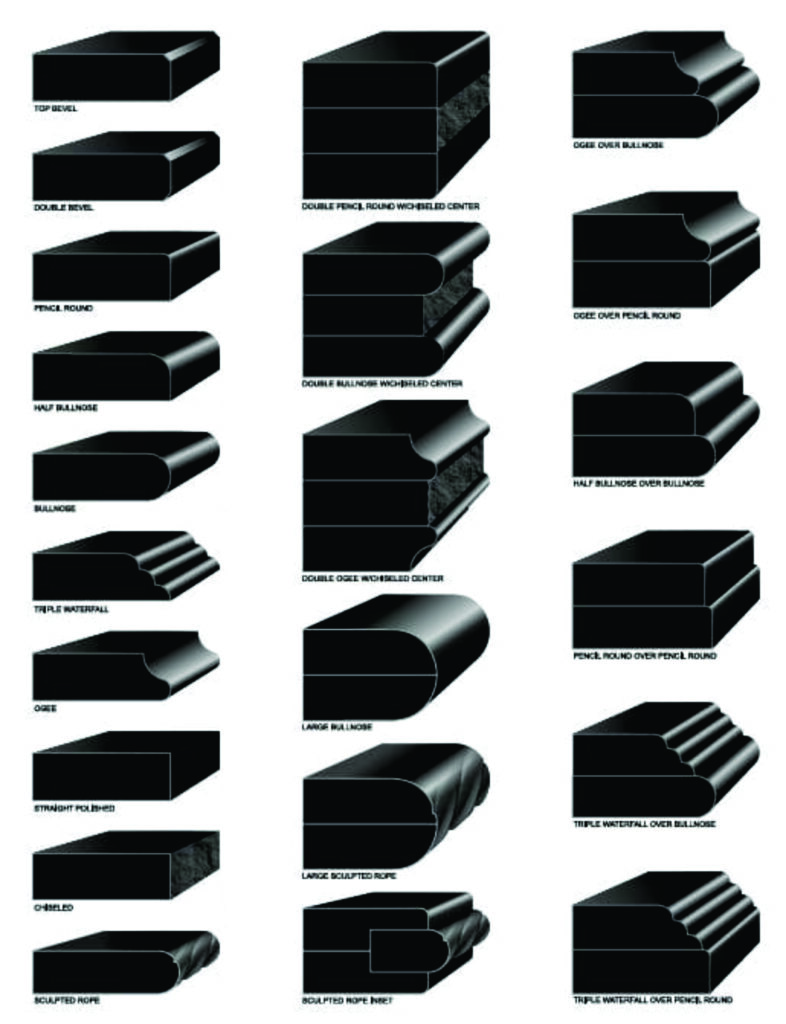 The edge profile you choose for your countertop or stone surface can significantly influence the overall appearance and style of your space. We offer a range of edge profiles to complement your design preferences: